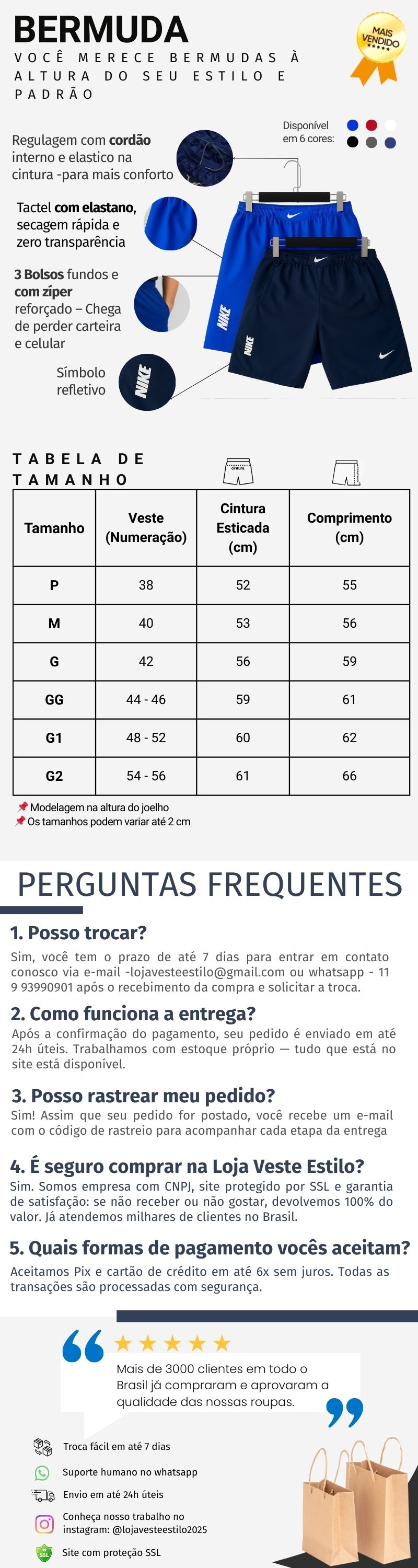 Caimento moderno com tecido que seca rápido e permite liberdade total de movimentos.