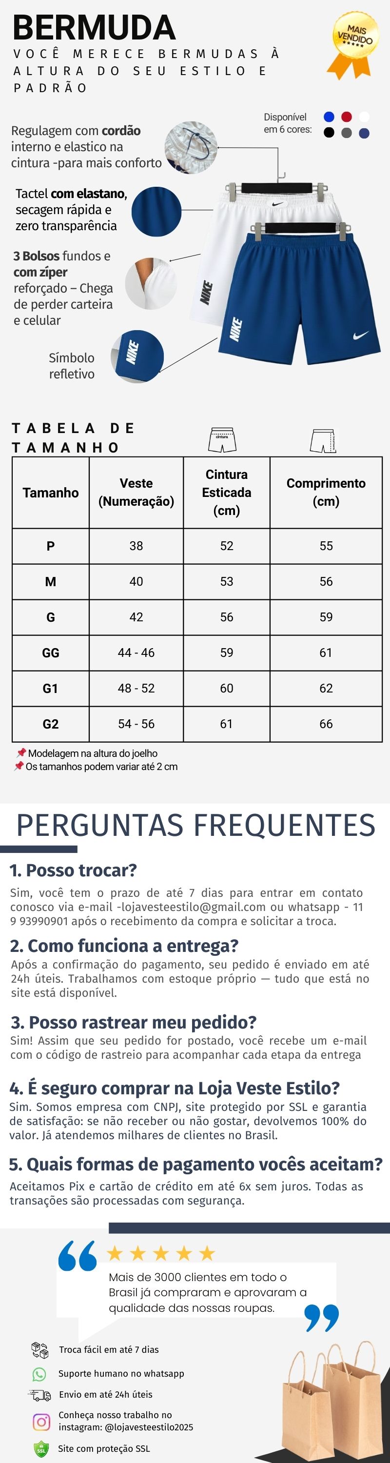 ✔ Troca fácil em até 7 dias