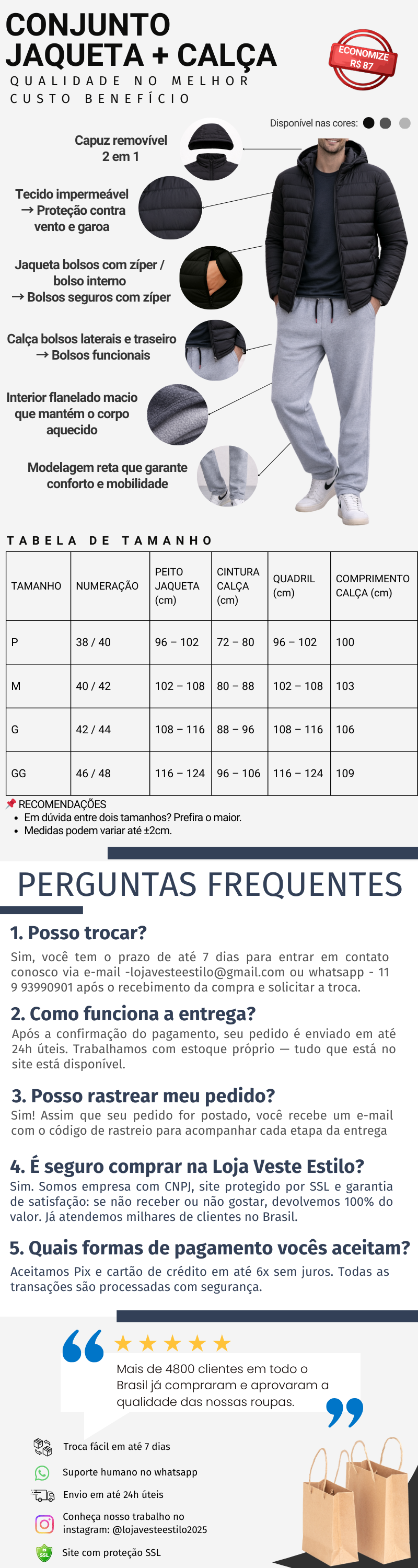 Jaqueta Masculina com Capuz + Calça de Moletom