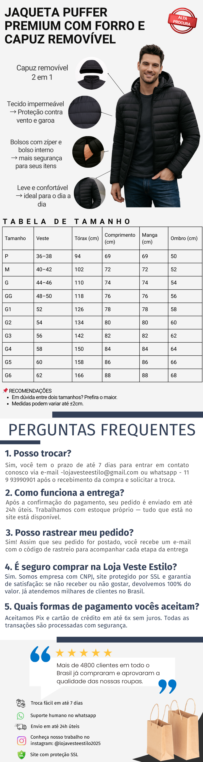 Confeccionada com material resistente, ela oferece conforto ideal para os dias mais frios.