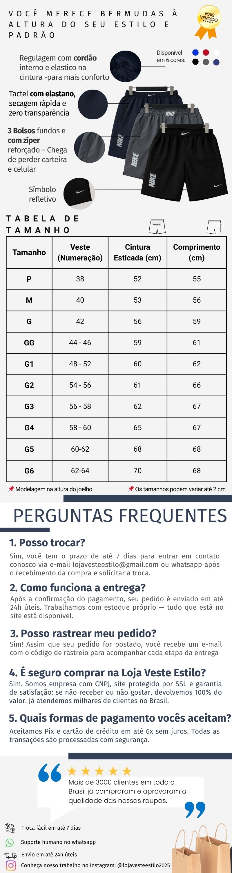 ✔ Troca fácil em até 7 dias