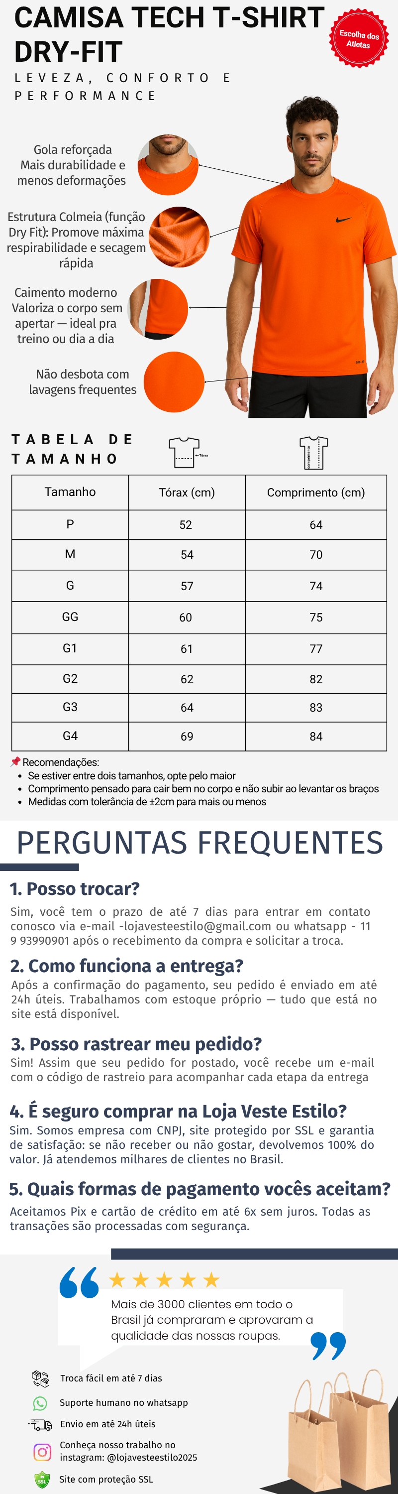 Kit 4 Camisas Masculinas Tech T-Shirt Dri Fit P ao G4 Plus Size. Tecido leve e respirável, ideal para treinos e uso diário.
